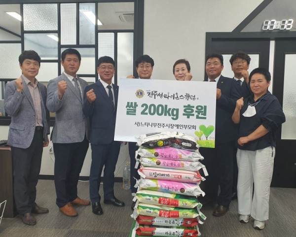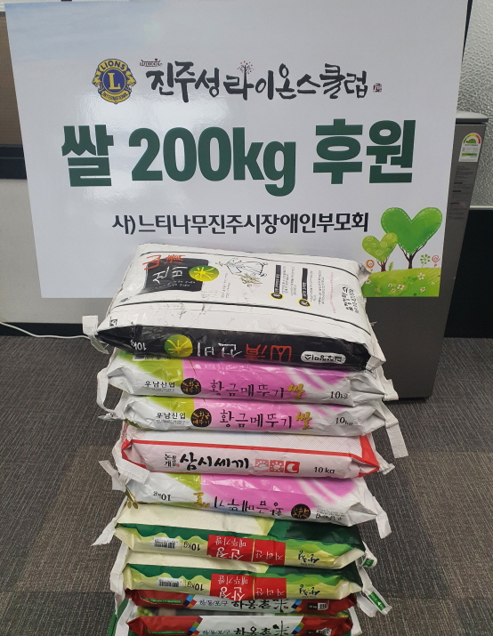 진주성라이온스클럽(회장 서홍욱 외 회원일동)은 지난 8일 사단법인 느티나무 진주시장애인부모회에 쌀 10kg 20포대를 후원하였습니다.