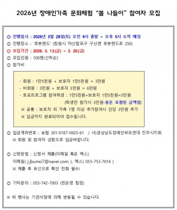 2026년 가족문화체험 '봄 나들이' 참가자 모집